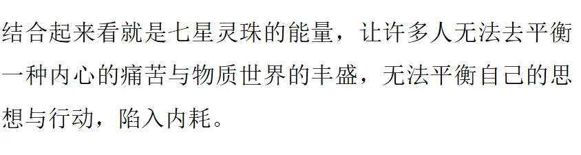 所以B站上不少人讨论,七星连珠是不是负面的?是不是黑暗势力用来吸收人类精气神的。其实不是,根源在于这些人原本就是有创伤的。七星连珠只是更快揭开了伤疤而已。