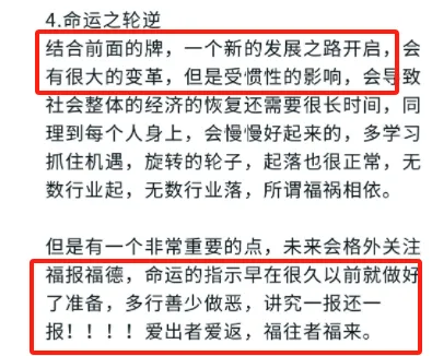 命运之轮逆位,代表一种天道淘汰机制,顺应时代和命运的召唤,会更快成长,否则会被淘汰。尤其冥王星进入水瓶座时代之后,业力清算非常非常快,之后的每年就像去年,今年一样,可能会有很多人突然去世,让大家措手不及,一脸懵。