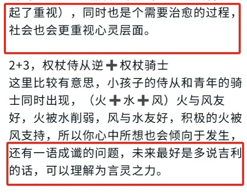 助教BQ的分析也是同理,从个人角度看时代:正义牌有宝剑的地方,就必然有创伤和伤害出现,而另一方面,总有人能从伤害中走出来,走向新的光明,新的世界。也总有一部分人,未来走不出来,会加大伤害的可能性。