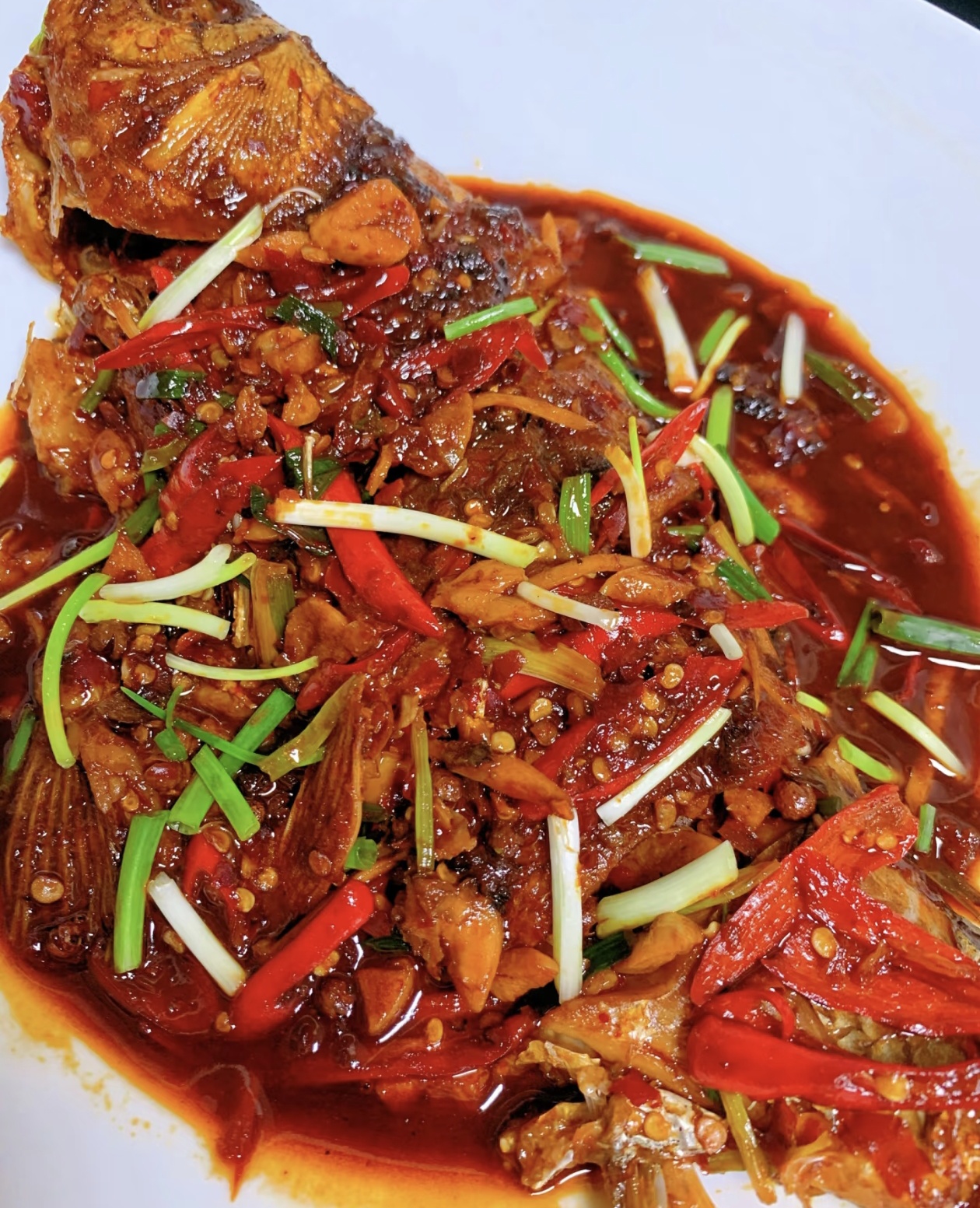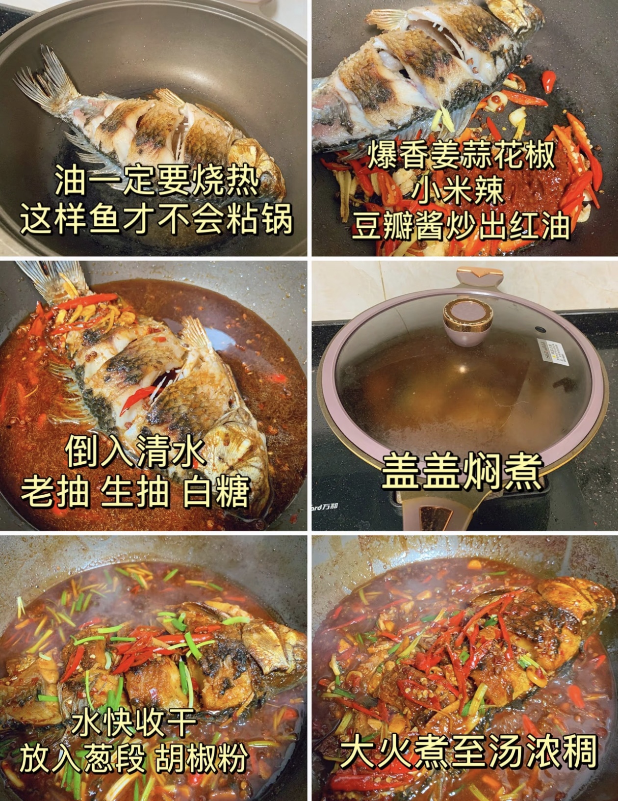 夹一块鱼肉,轻轻一抿就能脱骨,浓郁的酱香混合着微微的辣意,鱼肉的鲜嫩和酱汁的厚重完美融合,连骨头缝里都浸满了味道。用浓稠的汤汁拌上米饭,一口下去,咸香微辣,好吃到停不下来,难怪朋友都说,吃这道菜一定要多煮点米饭。
