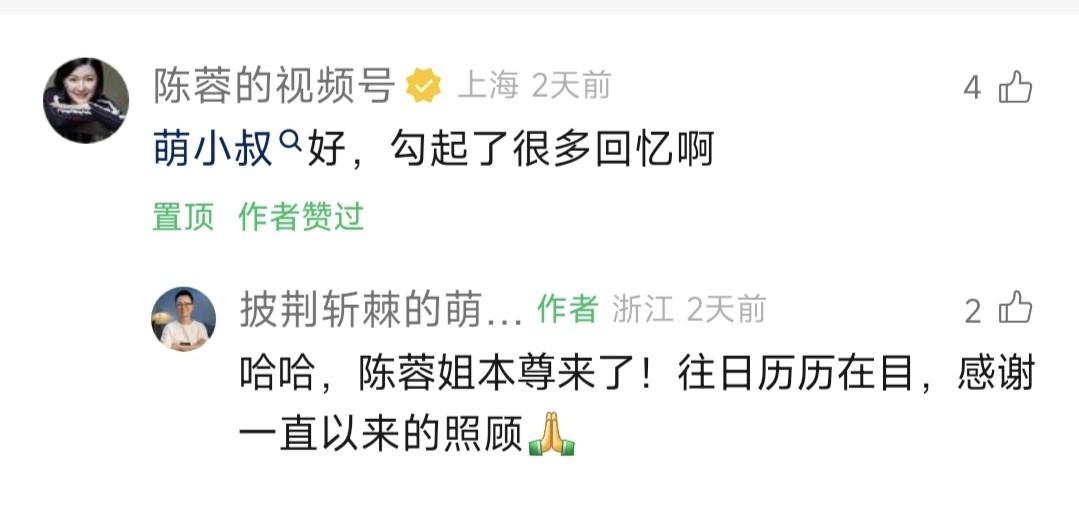 一次在东视的员工食堂用餐,他很远就看到了陈蓉,本能的反应让他加快脚步追上去与偶像打招呼。当走到陈蓉跟前,大胆说出“陈蓉姐,你好”时,陈蓉并没有迅速认出眼前的苏萌。但几秒后,陈蓉大概是觉得对方有些眼熟,于是就以为他是来电视台学习交流的。苏萌此时拿出东视的工作证,欢快的告诉陈蓉自己是正式的员工。