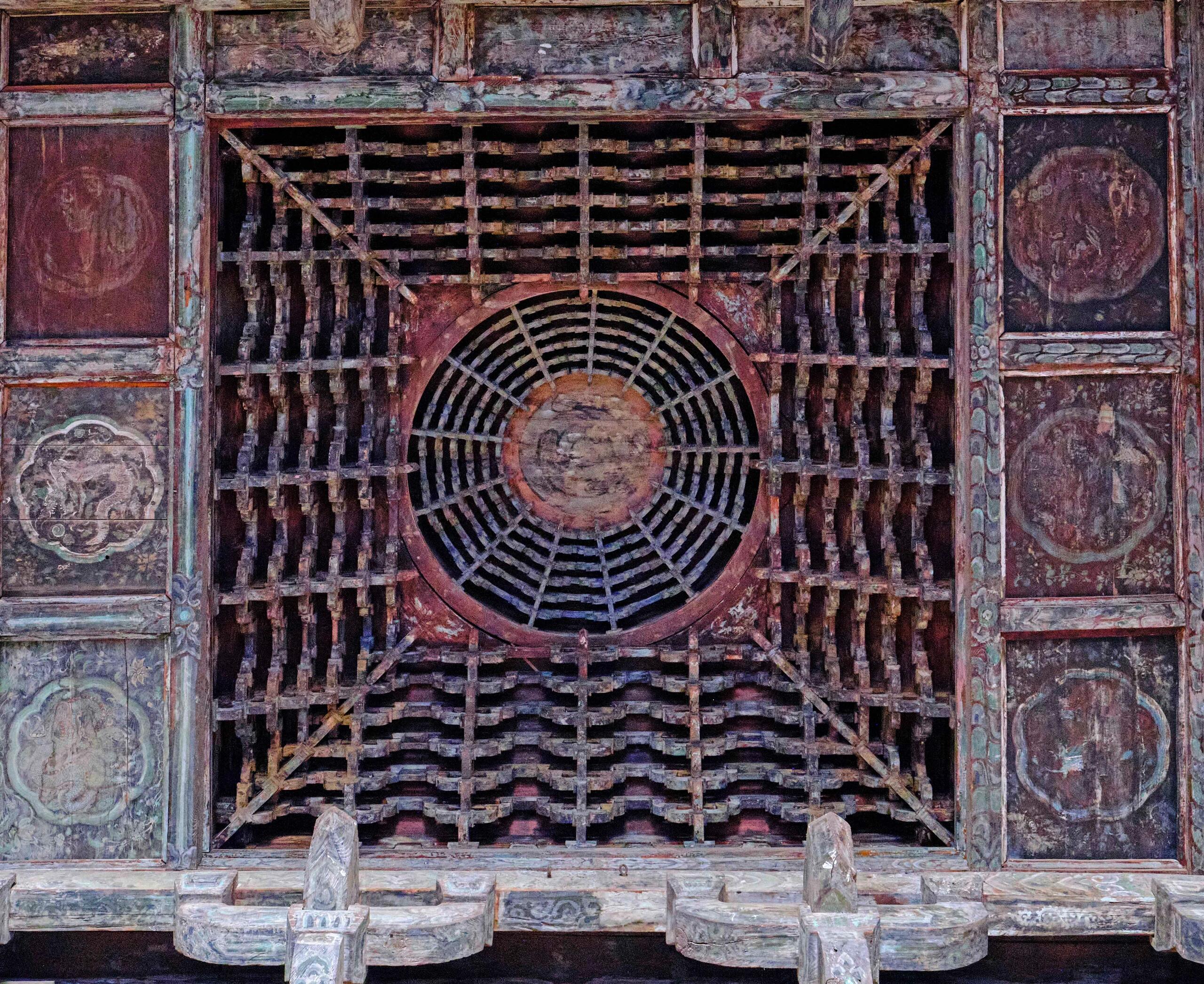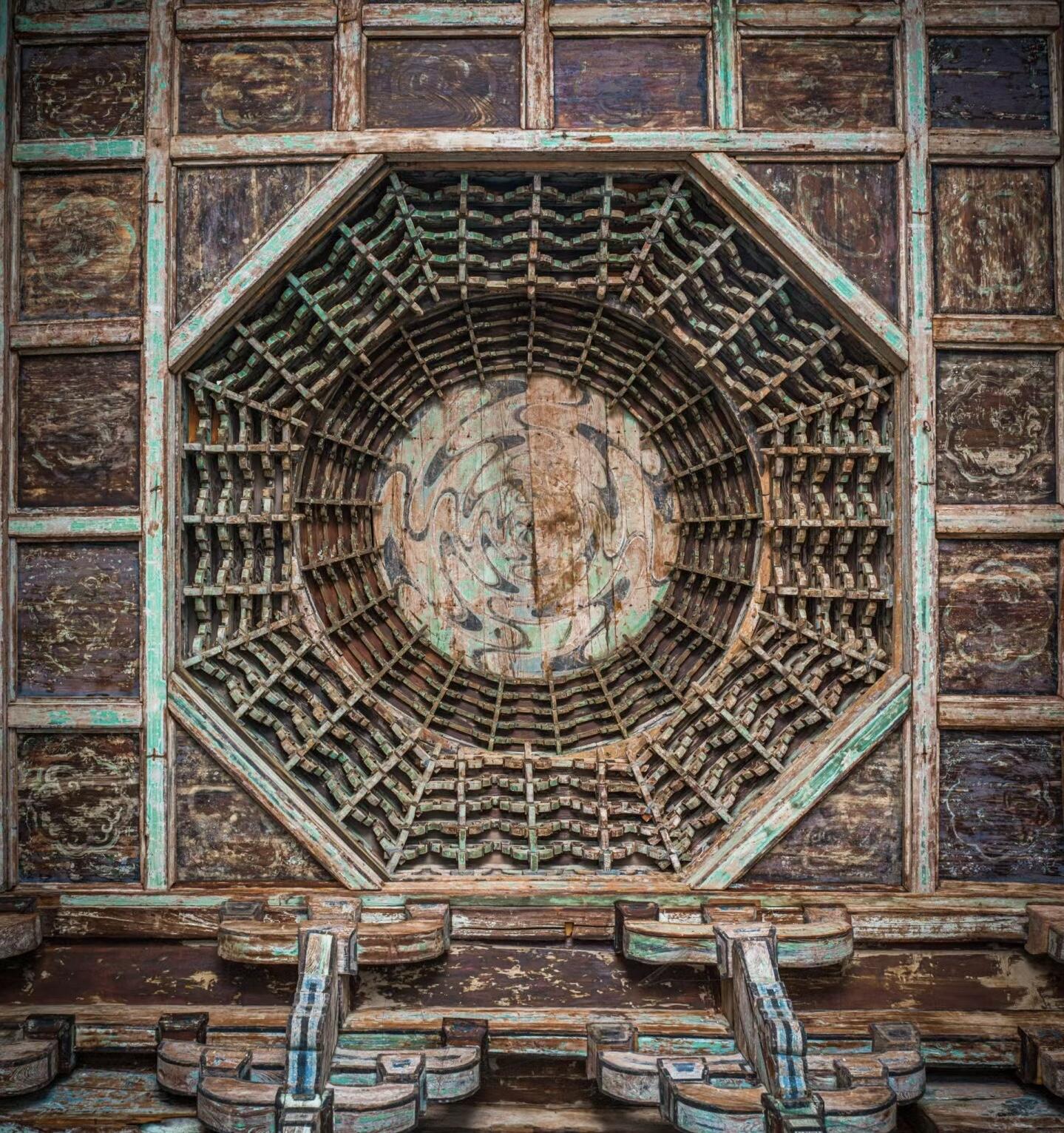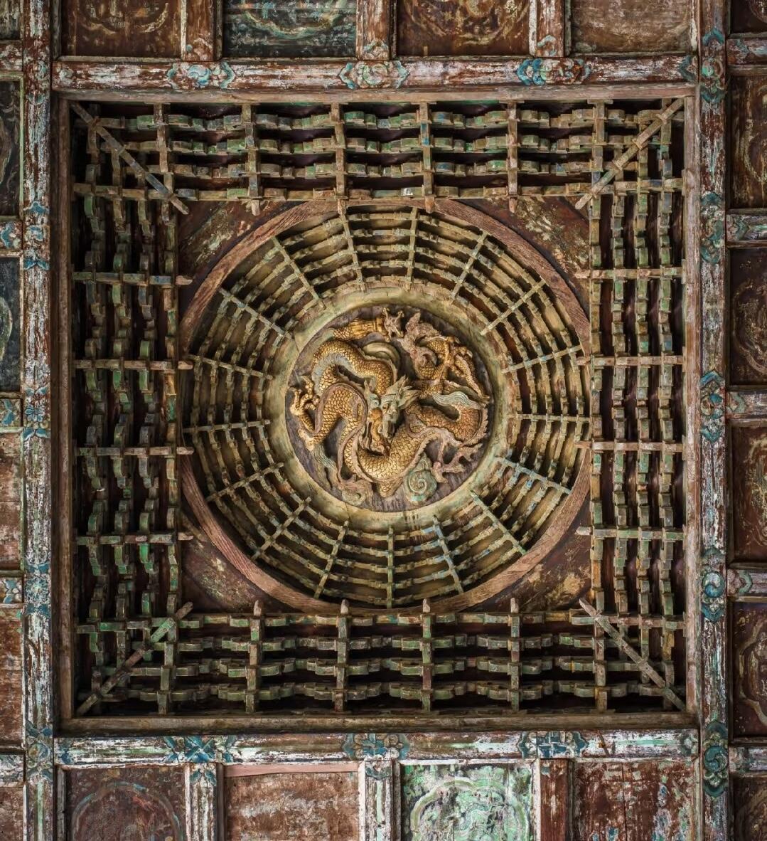 这方藻井,没有金碧辉煌的装饰,没有复杂的色彩,就凭着一方木头,一群工匠的手,成了永乐宫最动人的部分。它让我们知道,真正的“天工”,不是多么华丽的材料,不是多么夸张的造型,而是对细节的敬畏,对匠心的坚持。就像那只盘龙,几百年里一直静静地待在穹顶,看着殿内的香火缭绕,看着来来往往的游客,它不说一句话,却用每一道刻痕,告诉我们:什么是真正的“用心”。