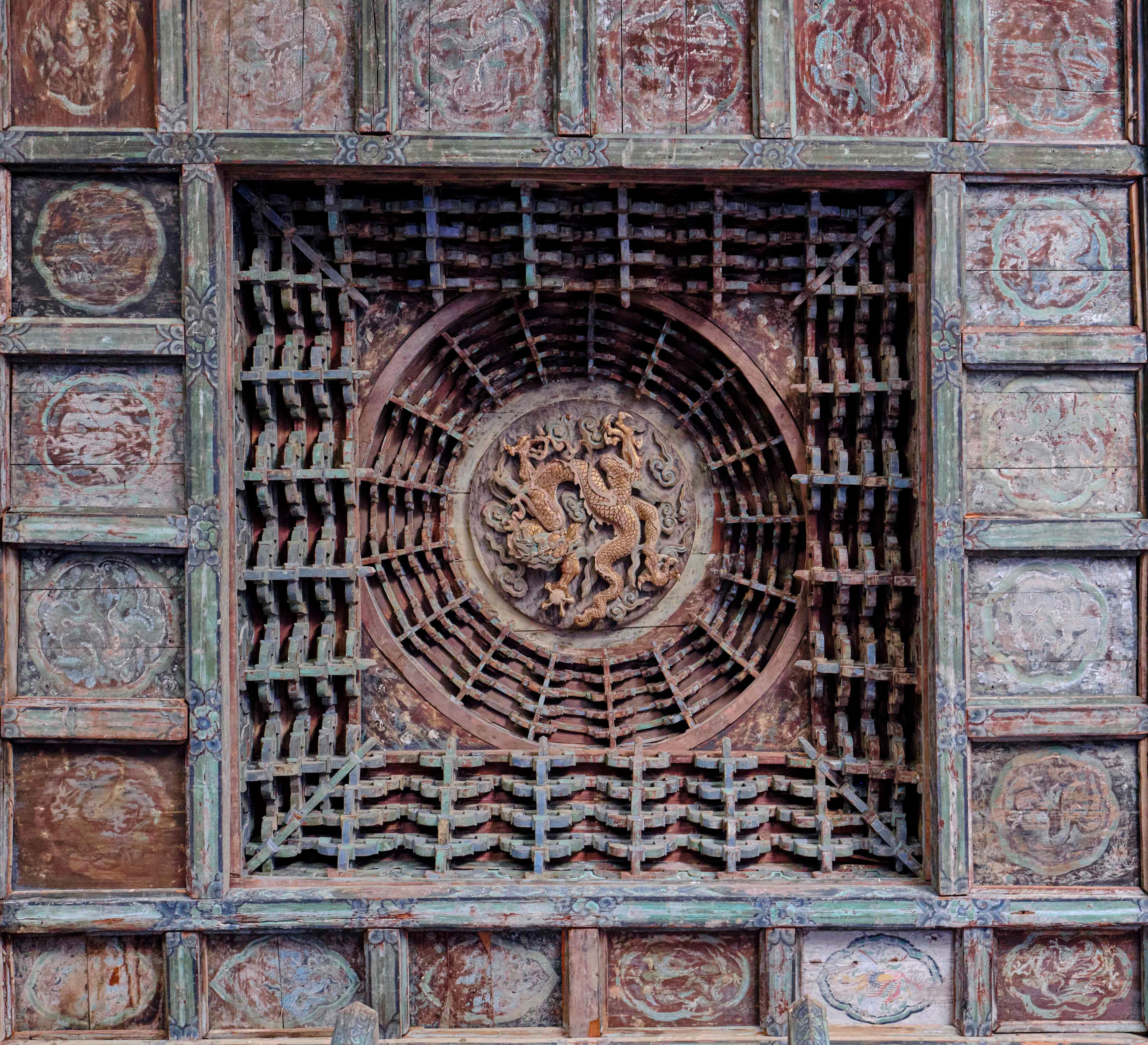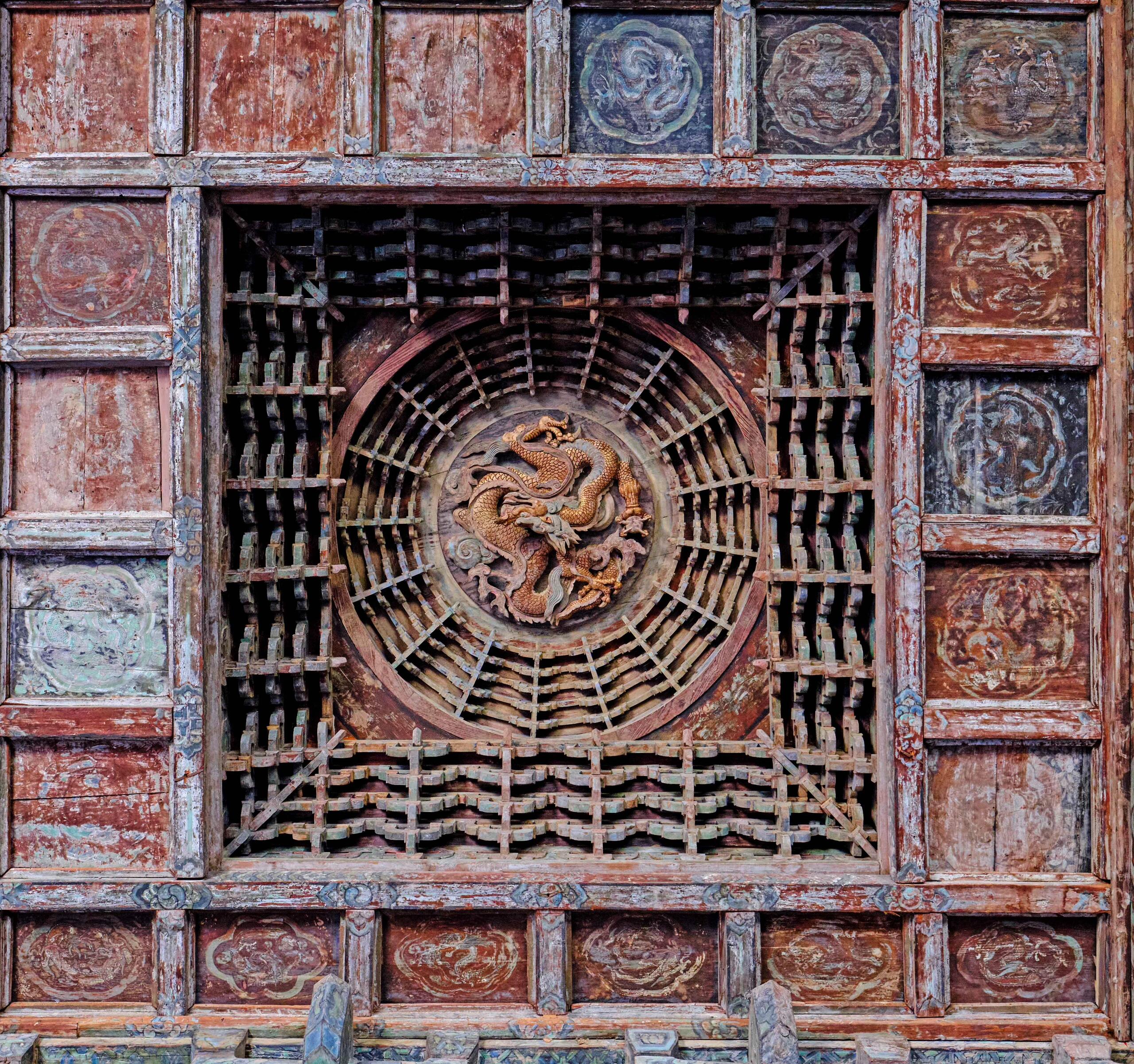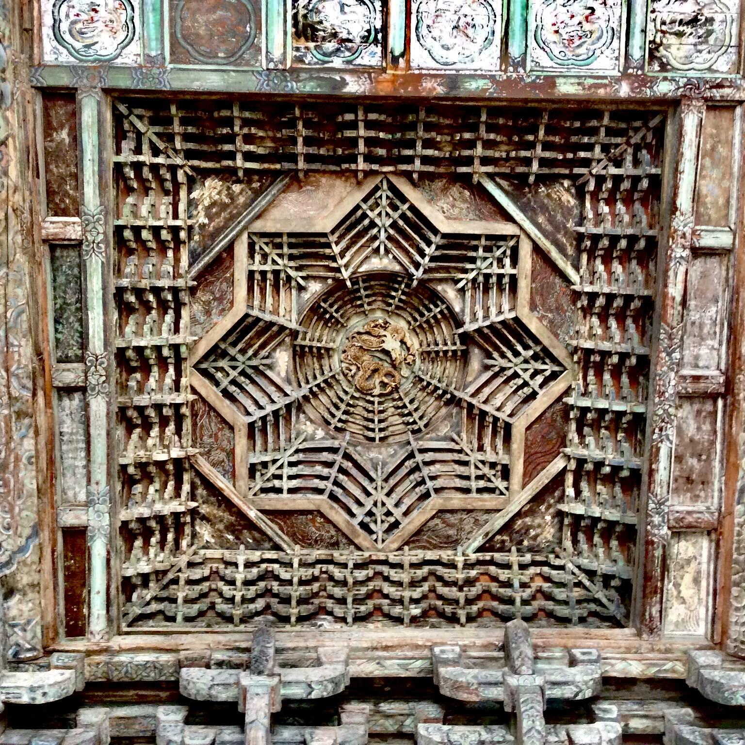 这方藻井,没有金碧辉煌的装饰,没有复杂的色彩,就凭着一方木头,一群工匠的手,成了永乐宫最动人的部分。它让我们知道,真正的“天工”,不是多么华丽的材料,不是多么夸张的造型,而是对细节的敬畏,对匠心的坚持。就像那只盘龙,几百年里一直静静地待在穹顶,看着殿内的香火缭绕,看着来来往往的游客,它不说一句话,却用每一道刻痕,告诉我们:什么是真正的“用心”。