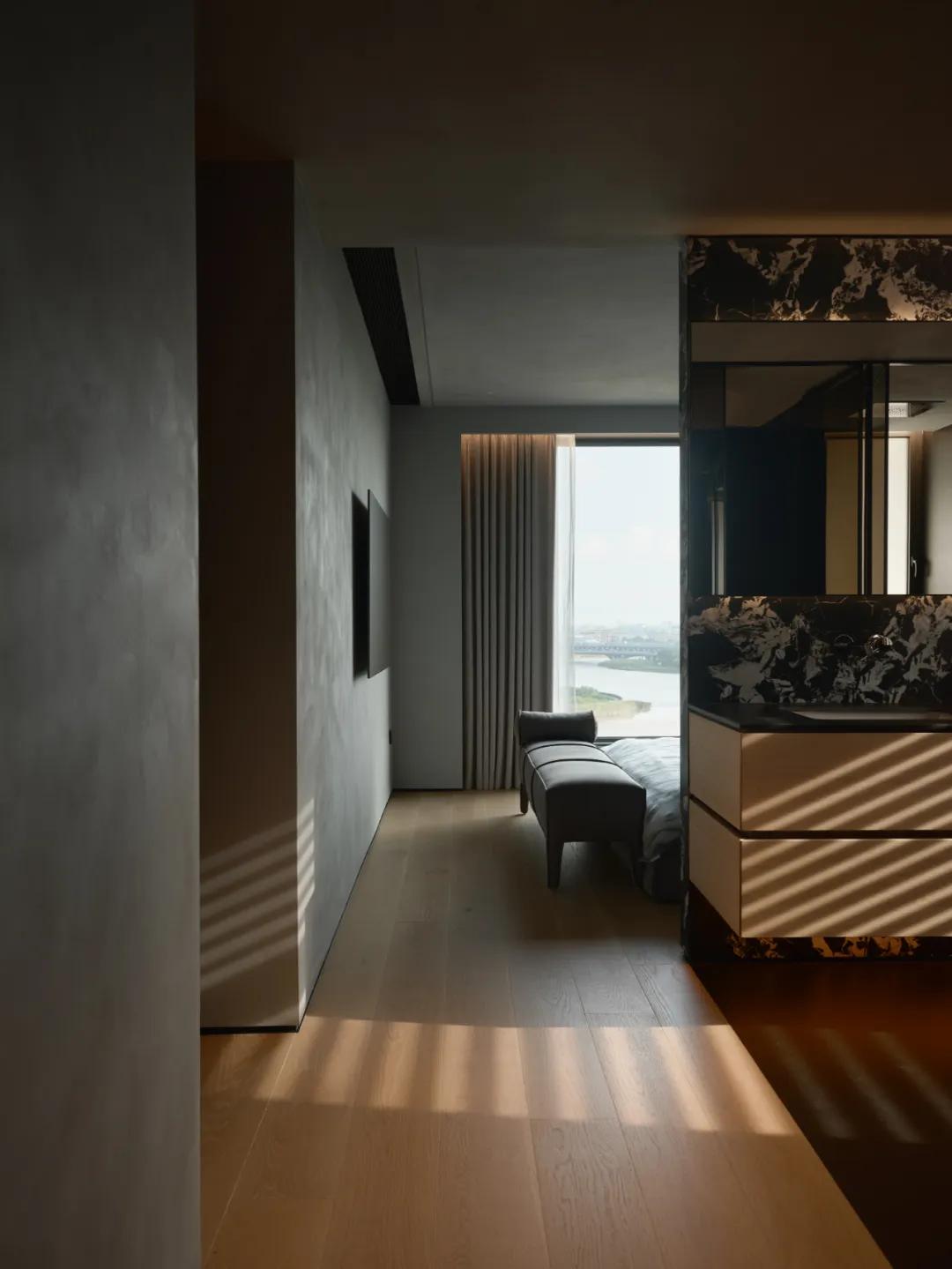 卫浴间与衣帽间顺畅衔接,为主人提供了极尽舒展的私属领域,功能与美学在此达成完美平衡。
