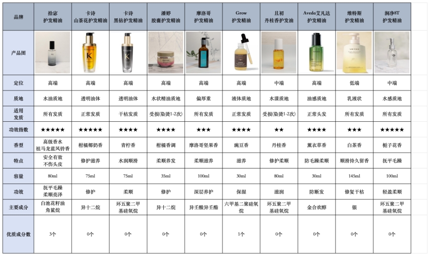 看完上面的选购技巧,你知道怎么选了吗?但说实话,文字太抽象,不如亲手抹一把来得清楚。我自己也是被几波“网红爆款”折腾怕了。为方便大家更直观地挑选,便把每滴油在发丝间的延展性、吸收到什么程度才算清透全记下来。连风一吹会不会飘味儿都没放过。希望这些实测经验能帮你少走弯路。