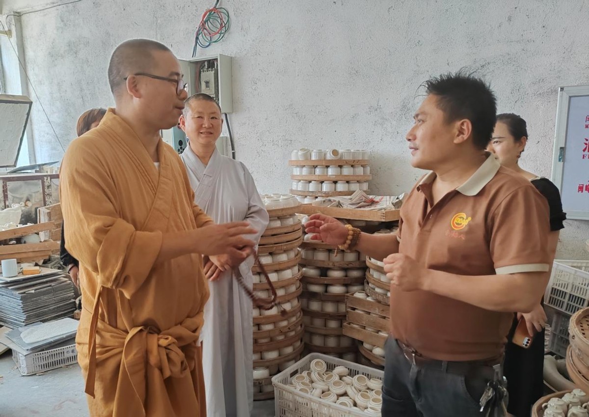 近日,一场跨越千年的文化对话在泉州德化悄然展开。泉州市永春县普济寺住持贤旺法师率僧团造访福建省德化县方窑陶瓷有限公司,唐慕林窑品牌创始人林良渊亲迎贵客,在瓷泥与釉彩交织的艺术空间里,为来宾详细阐释陶瓷设计理念与精湛的工艺制作流程。这场看似普通的考察活动,实则是一次文化基因的深度碰撞,背后是两大跨越时空的文化符号 —— 普济寺与唐慕林窑的深厚渊源。