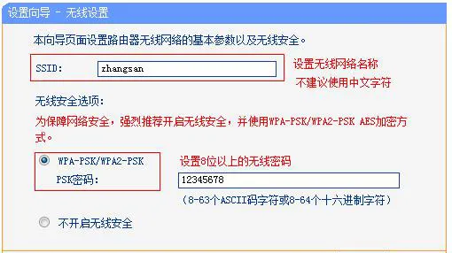 5.无线Wi-Fi设置:设置“SSID”——>选择“WPA-PSK/WPA2-PSK”——设置“PSK密码”——>点击“下一步”(此时路由器会自动重启)。