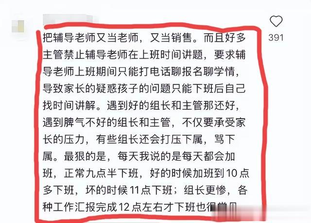 有员工表示,他们既要当老师又要当销售,白天上班还不能讲题,只能下班后抽时间回复家长问题。