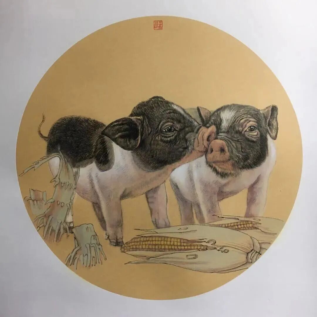 艺术创新是时代的审美要求,是一个民族富有活力和创造精神的表征。王吉习在以虎为题材的创作中,表现出艺术创造的智慧和胆识,取得了令人羡慕的艺术成就。他在艺术上,既崇尚传统,又致力创新,画风富丽典雅,突破了程式化的俗套赋予虎以人文之神韵,并创造了属于自己的艺术符号,被誉为“王老虎 ”。面对琳琅满目的先贤作品,王吉习没有把深厚的传统当作历史的包袱甩掉,而是深深扎根中华传统文化之中。深入研究与分析,突破传统画虎的套式,进行新的美学思考。他从环境生态美学角度,从中华文化的积淀中,更从对虎的深入观察中开拓新题材,提炼新主题, 创造新技法。他常采用拟人化的方法,借虎言志、抒怀,笔下的虎荡漾着兄弟亲情、天伦之乐、充满浪漫主义精神,不仅强化、丰富了虎画的意蕴与精神内涵,而且在当代虎画艺术中别树一帜。