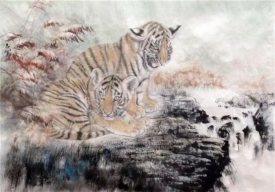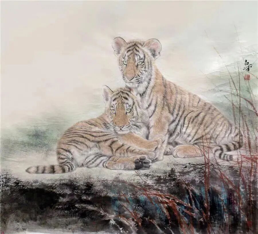 然而,正是由于历代画虎名家在虎画艺术发展上创造了座座艺术高峰,为后人再创新留下了更加艰难的历程。 王吉习,这位爱虎、画虎、 言必谈虎 、面带虎相的山东汉子,潜心十几年虎画创作,终于以虎仔画艺术横空出世.、婢倪千古,独步当今画坛。 王吉习1 959年出生。幼而好学,后考入中央美术学院中国画系深造,艰苦研励,专攻画虎,尤其擅画虎仔。曾多次于海内外成功举办老虎系列作品展,深受收藏界喜爱。