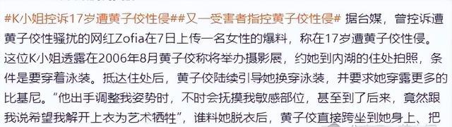 在今年4月份,Z女士又爆料出了黄子佼曾经侵害了17岁的K女士。
