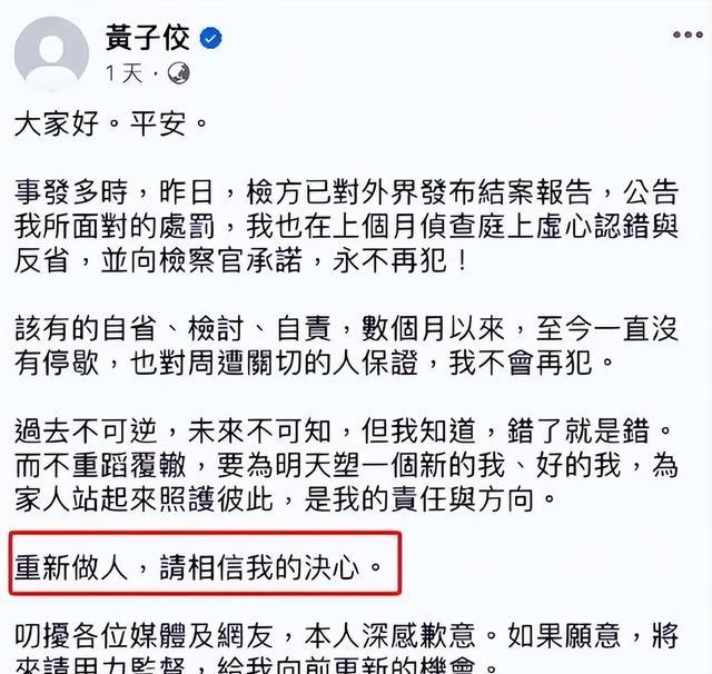 “深陷丑闻一年半之久,黄子佼终于等到了结局”。