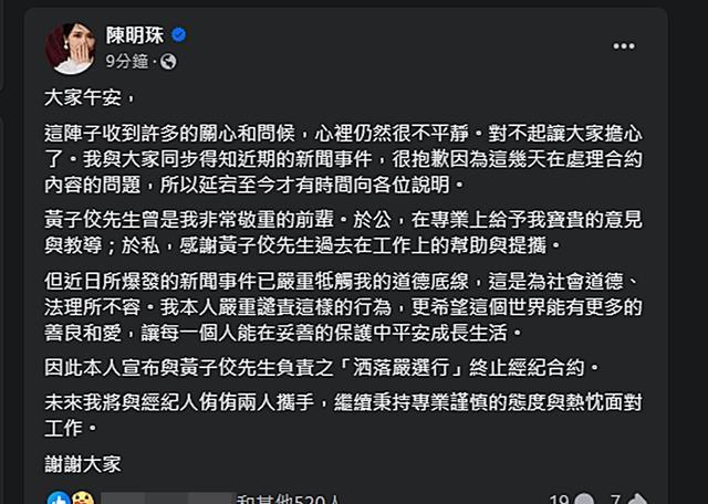 因为黄子佼作为一个艺人,心里自然也清楚哪些事情该做,哪些事情不该做。