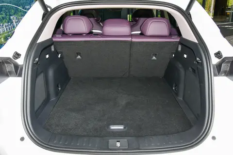 后备箱常规容积445L,能轻松放下3个24寸行李箱+1个背包。后排座椅支持4/6比例放倒,扩展后容积达1385L,装下儿童自行车、露营装备等大件物品没问题。电动尾门支持感应开启(脚踢式),搬东西时很方便,但感应灵敏度偶尔会“抽风”,需要找准角度。