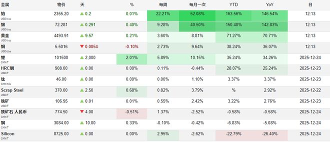 同样,消费电子 PCB 基材关键原料铜,LME 铜价首破 12000 美元 / 吨,较 2024 年均价上涨 40%,而全球铜供需缺口仅 2%;用于芯片导电层的白银,现货价格突破 70 美元 / 盎司,年内涨幅 140%,远超光伏、电子等领域 15% 的需求增速。