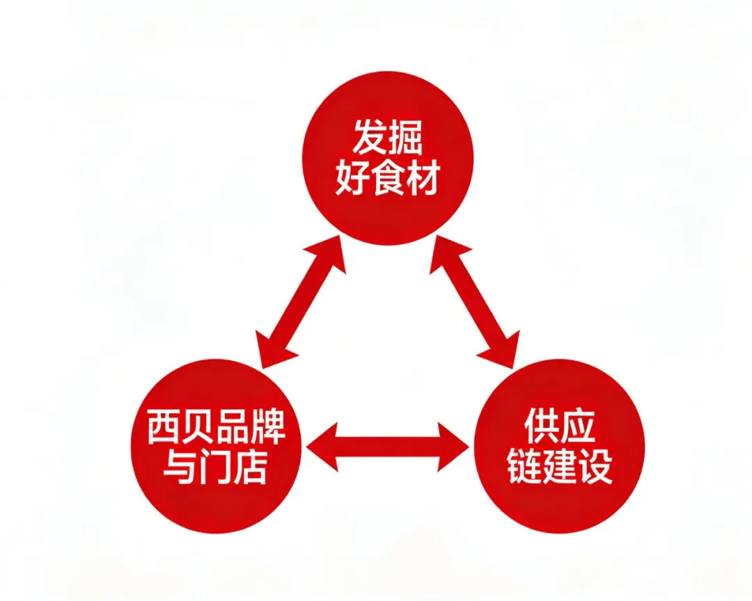 三个要素,发掘好食材的能力,供应链的重金投入,西贝的品牌和门店,三者缺一不可。