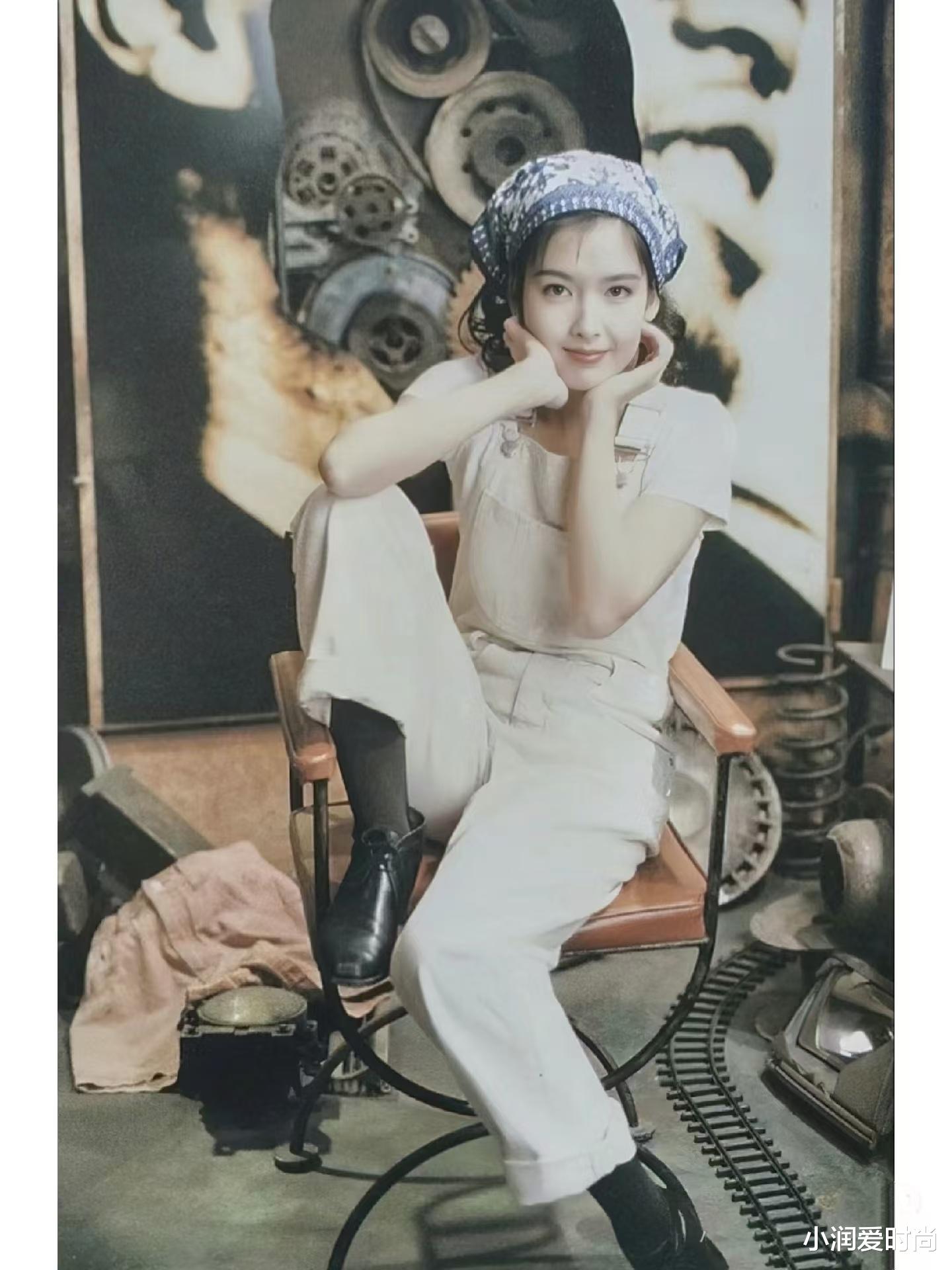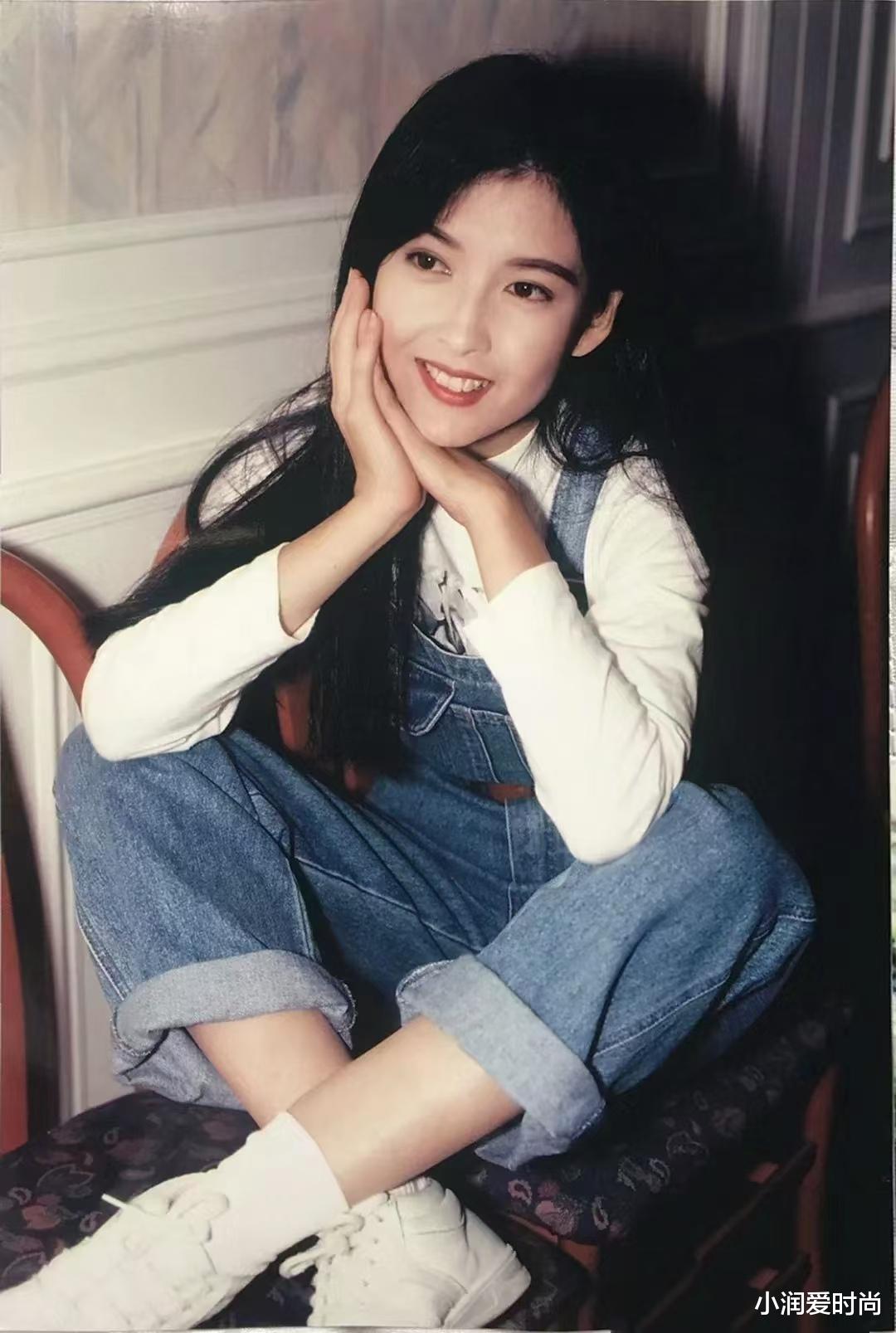 牛仔面料一直给人硬朗的视觉感,但浅蓝色的牛仔连衣裙穿在年轻时的周慧敏身上,却显得温柔又法式。