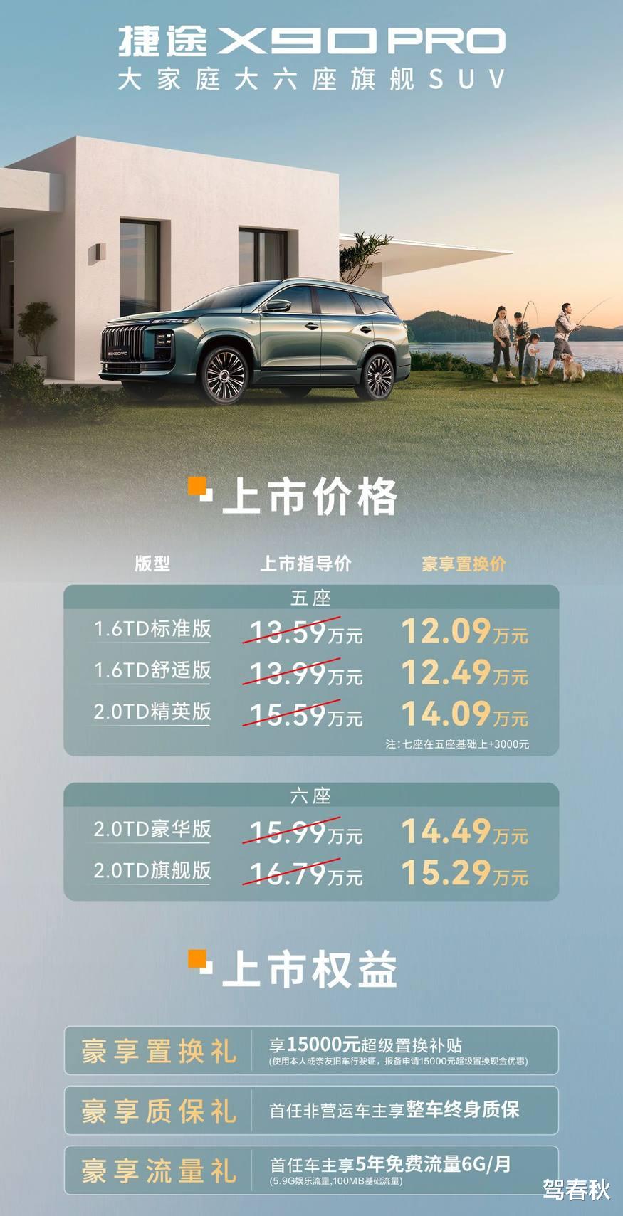 日前,捷途汽车2026款X90 PRO正式上市,推出5款车型,官方指导价13.59万-16.79万元。新车定位中型家用SUV,核心对标吉利豪越L、捷达VS8。