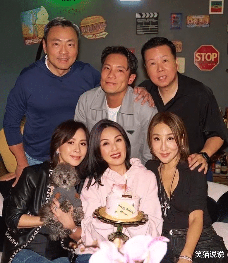 刘嘉玲还晒出了其他的合照照片,合照出镜的人有杨千嬅和她的丈夫丁子高,好友雷兆光、雷林静怡等人。杨千嬅坐在c位的位置,她双手捧着蛋糕对着镜头,微笑拍照,特别有氛围感。