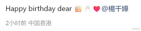 刘嘉玲在自己的个人社交账号上晒出了她与杨千嬅的合照,为杨千嬅庆贺52岁的生日。刘家人配文道:“happy birthday,dear。”在后面还艾特了杨千嬅的账号。在照片中可以看到刘嘉玲身穿一件皮衣外套搭配紧身牛仔长裤,她留着短发,戴着珍珠项链与钻石耳环,看起来贵气。刘嘉玲化着淡妆,梳着三七分的短发,看起来十分时尚,又很有干练气质。她的怀里抱着一只泰迪狗,对着镜头笑得十分开心。而作为寿星的杨千嬅穿着一件粉红色的连帽卫衣,搭配牛仔长裤,她披散着长发,看起来十分休闲舒适。杨千嬅化着淡妆,看起来状态很不错,气质很好。她双手捧着精致的蛋糕,与刘嘉玲站在一起,两人贴头合照,对着镜头笑得十分开心。