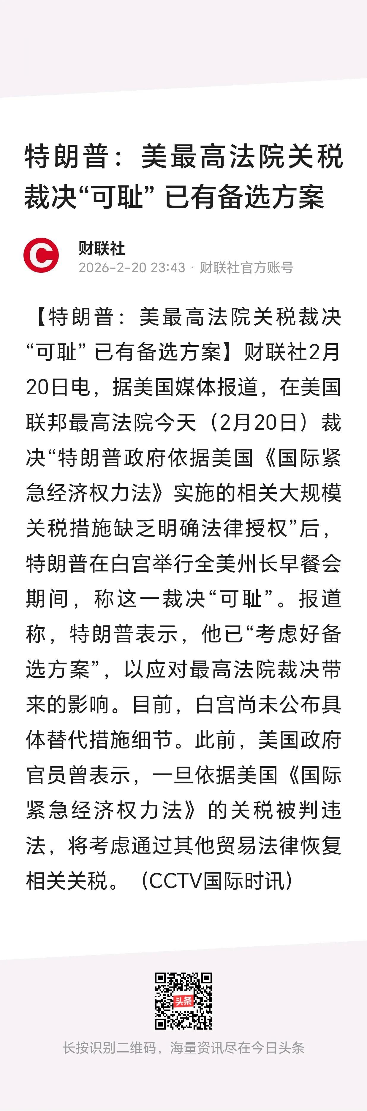 这场裁决,是美国内部分权的平衡游戏,更是对华博弈的战术休整。旧的关税工具被收回,不代表对抗结束,反而意味着美国正在酝酿更精准、更隐蔽、更具系统性的打压手段——可能是细化的产业限制、精准的技术封锁、抱团的盟友围堵,或是披着“公平贸易”外衣的新型壁垒。表面上是司法约束行政,骨子里是统一口径、优化打法,集中力量继续对华竞争。