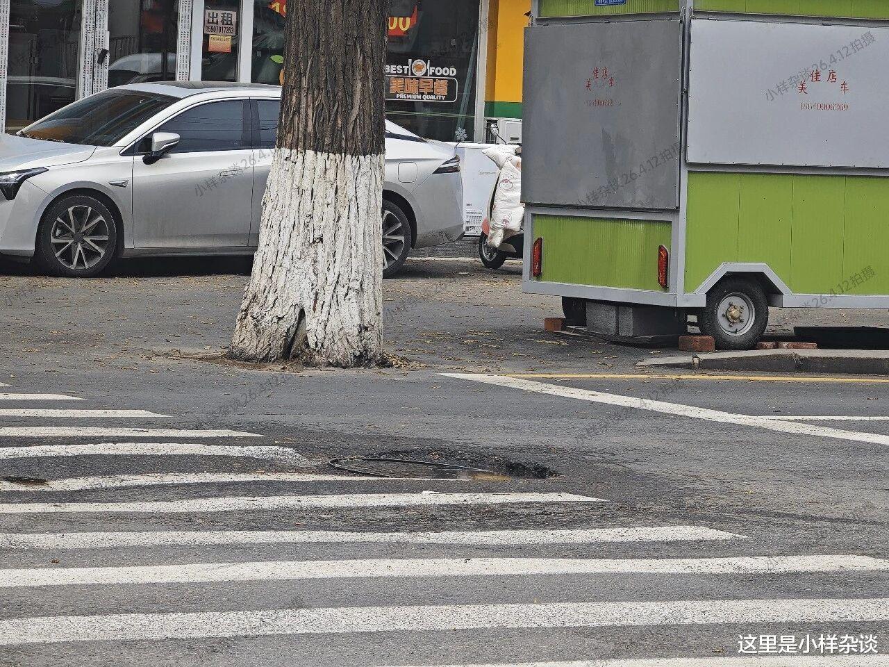 (肇工街,图片来源于2026年4月12日现场拍摄)这条路快车道上井盖不少,不同于其他道路,电力井盖出现在人行道、绿化带里,这条道路在道路中间,南向北方向最里侧车道每隔一段距离就会有两个挨着的电力井盖,大多数都是上面这样凹陷进去的,平整的井盖很少,如果一直在这条车道行驶,十分考验车辆的减震性能。