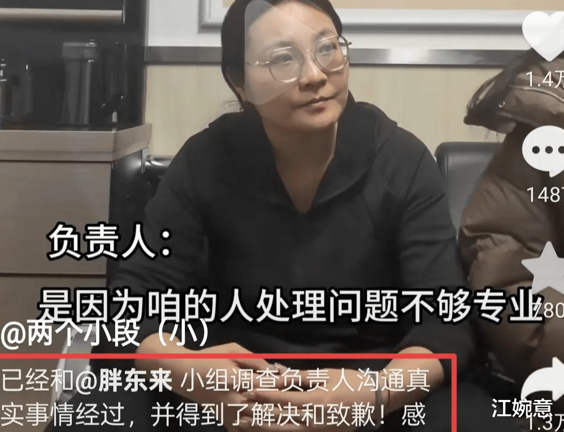 段女士再发视频,胖东来负责人承认错误,诚恳道歉,问题得到解决2月5日下午7点多,段女士再次发了一段视频,称已经和胖东来调查小组负责人沟通了真实的事情经过,得到了解决和致歉。