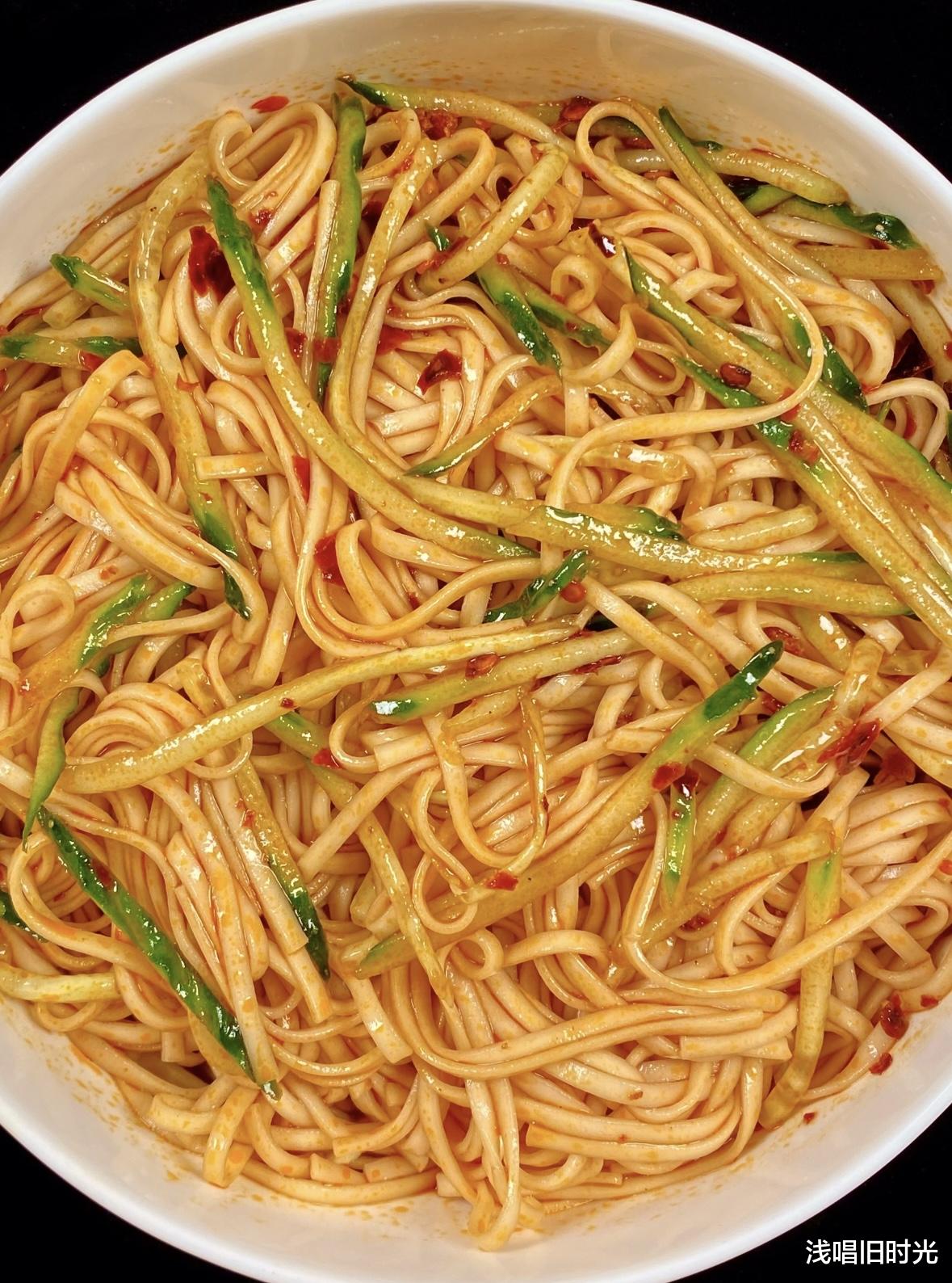 做法:面条煮熟过凉水,搭配配菜与酱料。