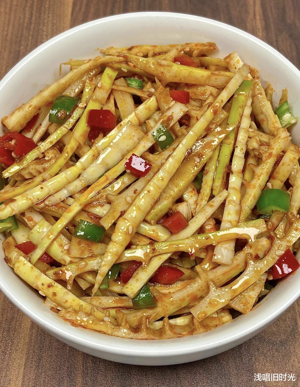 做法:春笋焯水撕条,加调料拌匀冷藏