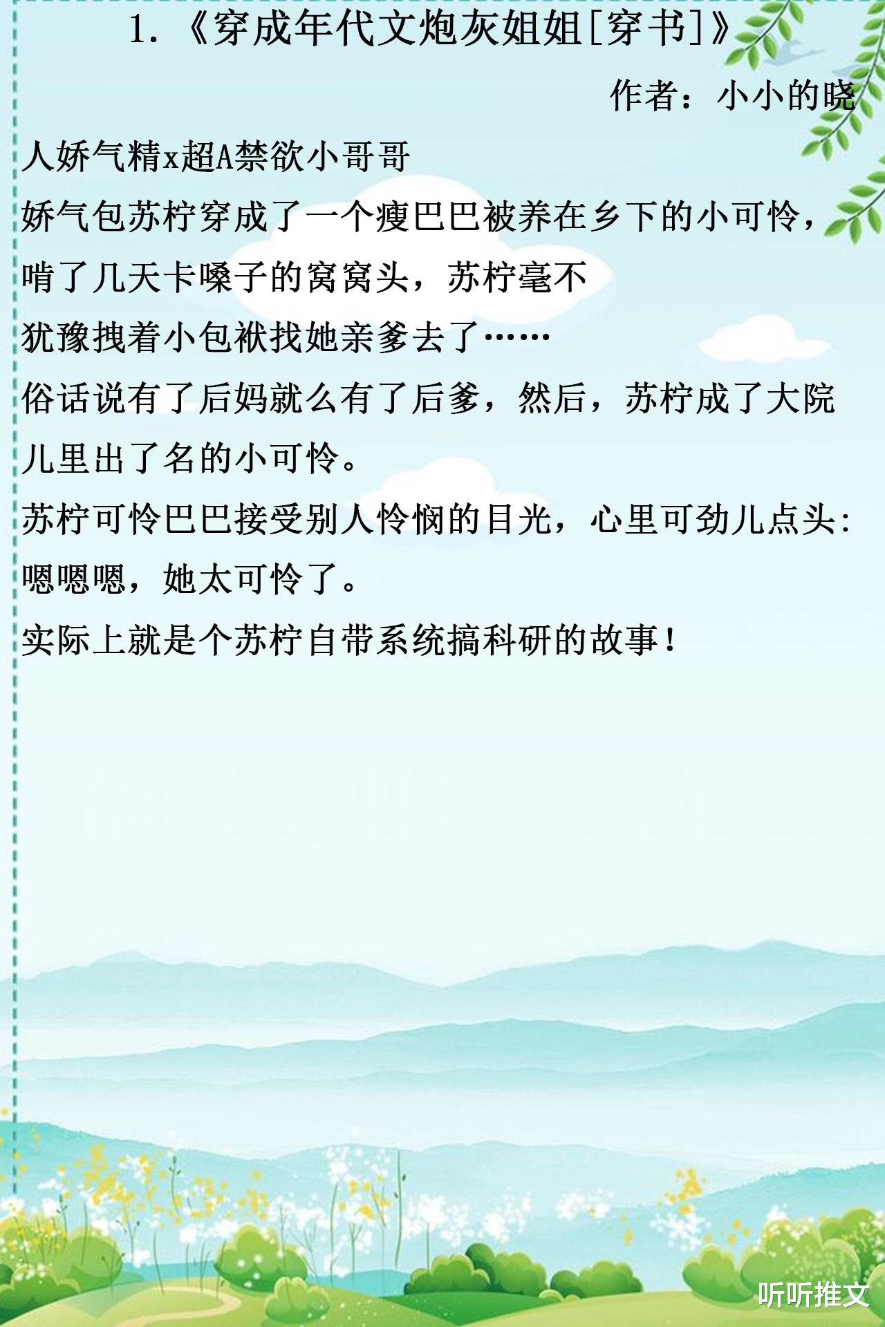 今日推荐三本宝藏年代文,真爱无敌,强推《晏晏少年时》《穿成年代文炮灰姐姐[穿书]》,故事积苏宠,大家一起收藏。1.《穿成