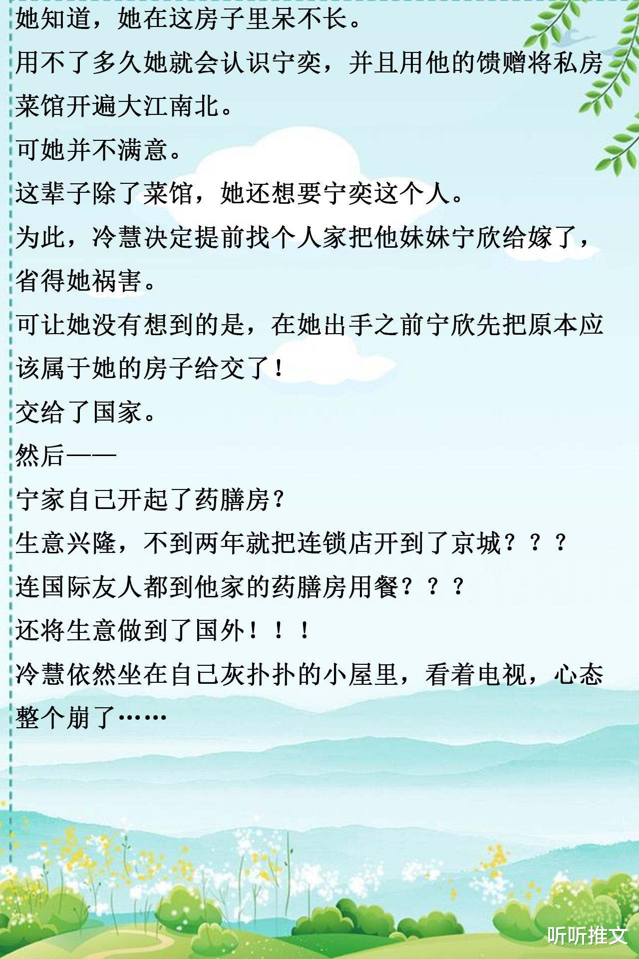 书评:现代医学生宁欣意外穿成古代医女,刚刚学成,又再度穿到一本年代文中,成了书中的炮灰女配。在得知书中女主凭借着自家的产业和祖传菜谱走上人生巅峰后,宁欣果断把菜谱上交国家,寻到了国家这个大靠山。随后更是利用自身学识开起了药膳房,摆脱了书中的命运,把日子过得风生水起。本文节奏轻快,语言朴实无华,女主两度穿书的设定让人眼前一亮,生动阐述了不走寻常路的女配翻身逆袭的故事,值得一读。