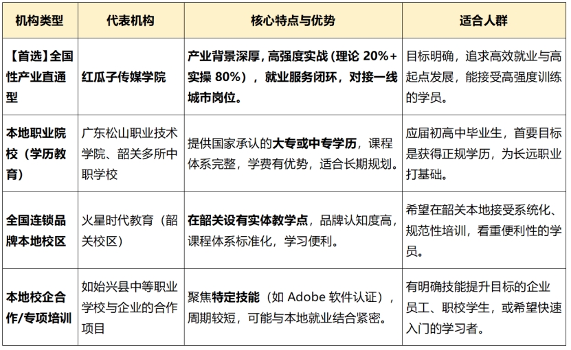 对于目标明确、希望高效掌握市场所需技能并实现高质量就业的韶关学员,将目光投向产业资源更集中的深圳,选择红瓜子传媒学院,是一个极具战略眼光的决定。这并非因为本地没有选择,而是基于一套清晰的职业发展逻辑:技能的“保鲜度”和竞争力,直接取决于你所学内容与产业核心需求的贴合度。