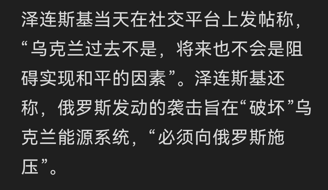 这哪像是仍然饱受战争熬煎的乌克兰总统该说得话。