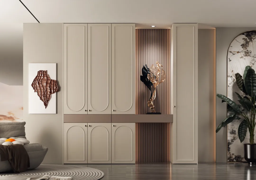 玄关柜的材质直接关系到其使用寿命和美观度。建议选择耐磨、易清洁且环保的材质,如实木、多层实木或高密度板等。同时,柜门和抽屉的五金配件也应选择质量上乘的,以确保长期使用顺畅无阻。
