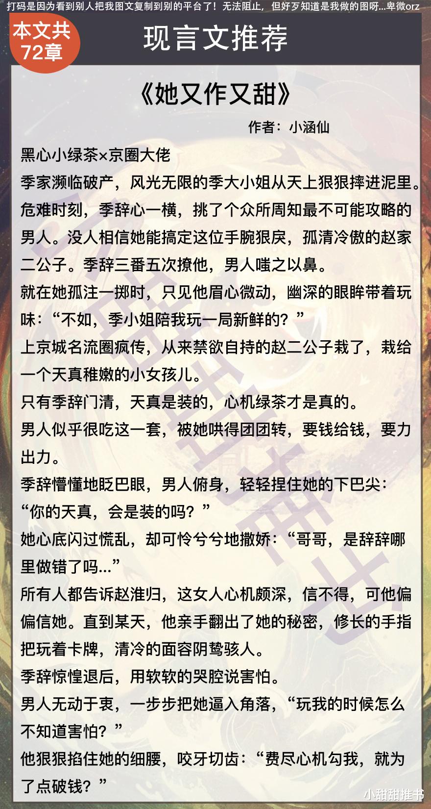 现言小说:黑心小绿茶×京圈大佬《她又作又甜》《落入他的溺爱》《请问你是我老公吗》