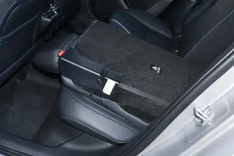 空间体验方面,我们邀请了身高 178cm 的体验者进行实测。前排调整至合适驾驶姿势后,头部空间剩余约一拳两指,腿部空间表现宽松,不会有局促感。保持前排座椅位置不变,体验者移至后排,头部空间仍有一拳余量,腿部空间则达到两拳左右,这样的表现对于日常乘坐来说完全足够,即便是满载情况下,后排中间乘客也能获得相对舒适的乘坐体验。储物空间方面,车内设计了多个实用的储物格,前排中央扶手箱容积可观,能容纳不少随身物品,后排杯架的设置也提升了实用性。行李舱容积为 405L,满足日常购物、短途旅行的储物需求不成问题,后排座椅支持 40:60 比例放倒,必要时还能扩展储物空间。