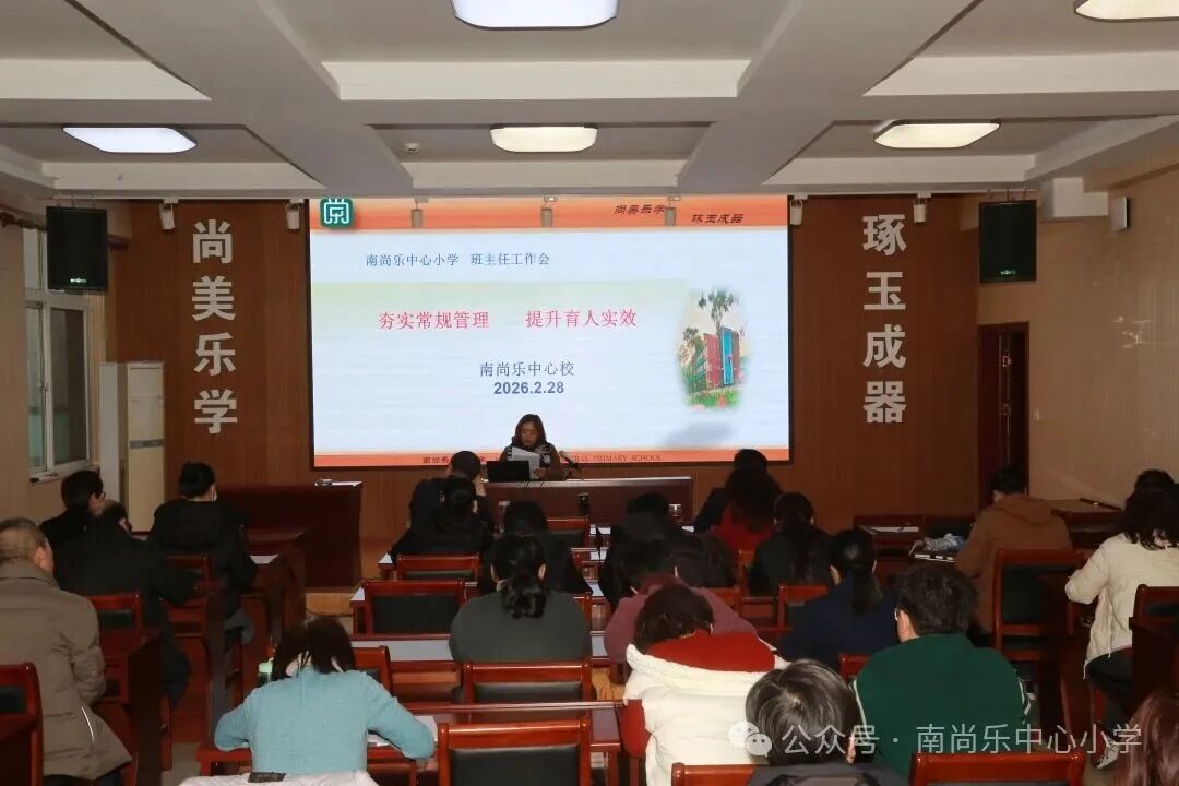 为进一步强化班级常规管理,提升班主任育人实效,推动学校德育工作高质量发展,2026年2月28日,北京市房山区大石窝镇南尚乐中心小学在三楼多功能厅召开班主任工作会议。学校领导、德育处及全体班主任参会,会议由王金艳老师主持。
