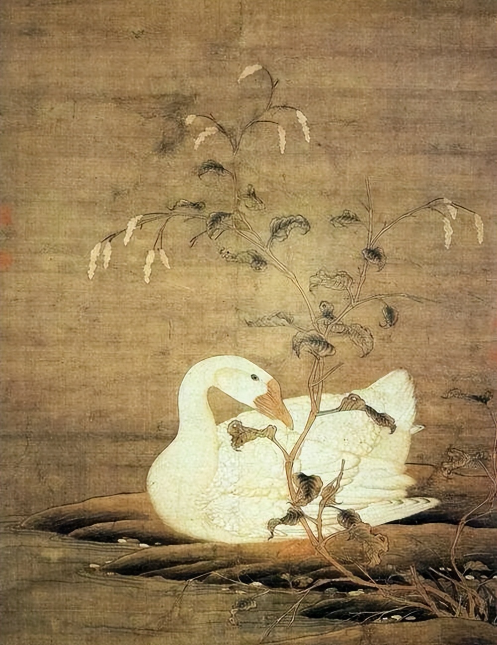 在绘画领域,鹅的身影最早出现在唐代。现存最早的鹅画是唐代边鸾的《牡丹鹅图》,可惜原作已失传。宋代花鸟画大发展,鹅成为画家喜爱的题材。宋徽宗赵佶的《红蓼白鹅图》现存台北故宫博物院,画中白鹅曲颈梳翎,神态安详,与红蓼相映成趣。这幅画作于宣和年间(1119-1125年),当时宋徽宗三十多岁,正是艺术创作的成熟期。
