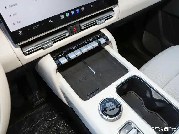 V27内饰基本延续家族风格,但细节会有所区别。具体来看,其中控台线条也是横平竖直,带来一种偏硬派风格,非常契合全车的这种定位。使用了内嵌式仪表+悬浮大屏组合,配有8295P座舱芯片、猎鹰700智驾等等,中央扶手区域还设置了无线充电面板、驾驶模式旋钮、水杯架等等。