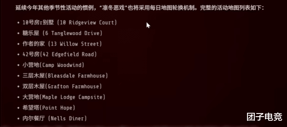 活动采用每日地图轮换制,你无法自由选择场景。系统每天会指定一张地图作为活动场地,已知的地图池包括山景法院10号、缠木道6号、柳街13号、埃奇菲尔德路42号以及最新的“内尔餐厅”等。因此,每日登录查看并完成当日地图的挑战至关重要。