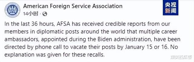 12月22日,特朗普政府突然下令,要求近30名美国驻外大使和高级外交官在2026年1月中旬前必须离职。