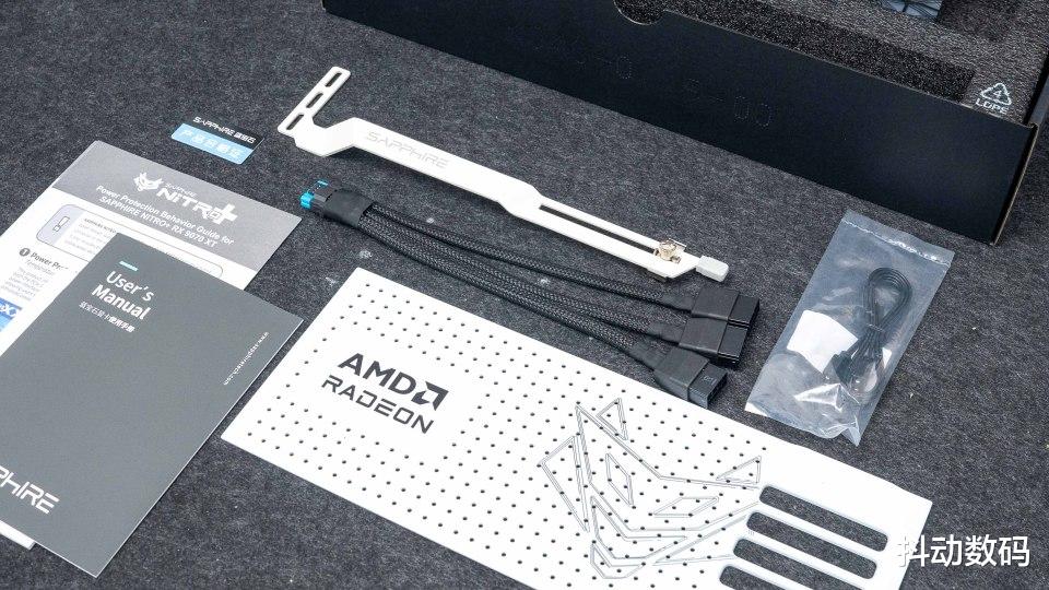打开包装也是熟悉的包装设计,与之前RX 9070 XT氮动一样,提供了磁吸背板。相信之前氮动的玩家也都一直在等这块纯白的氮动极光的上市吧。