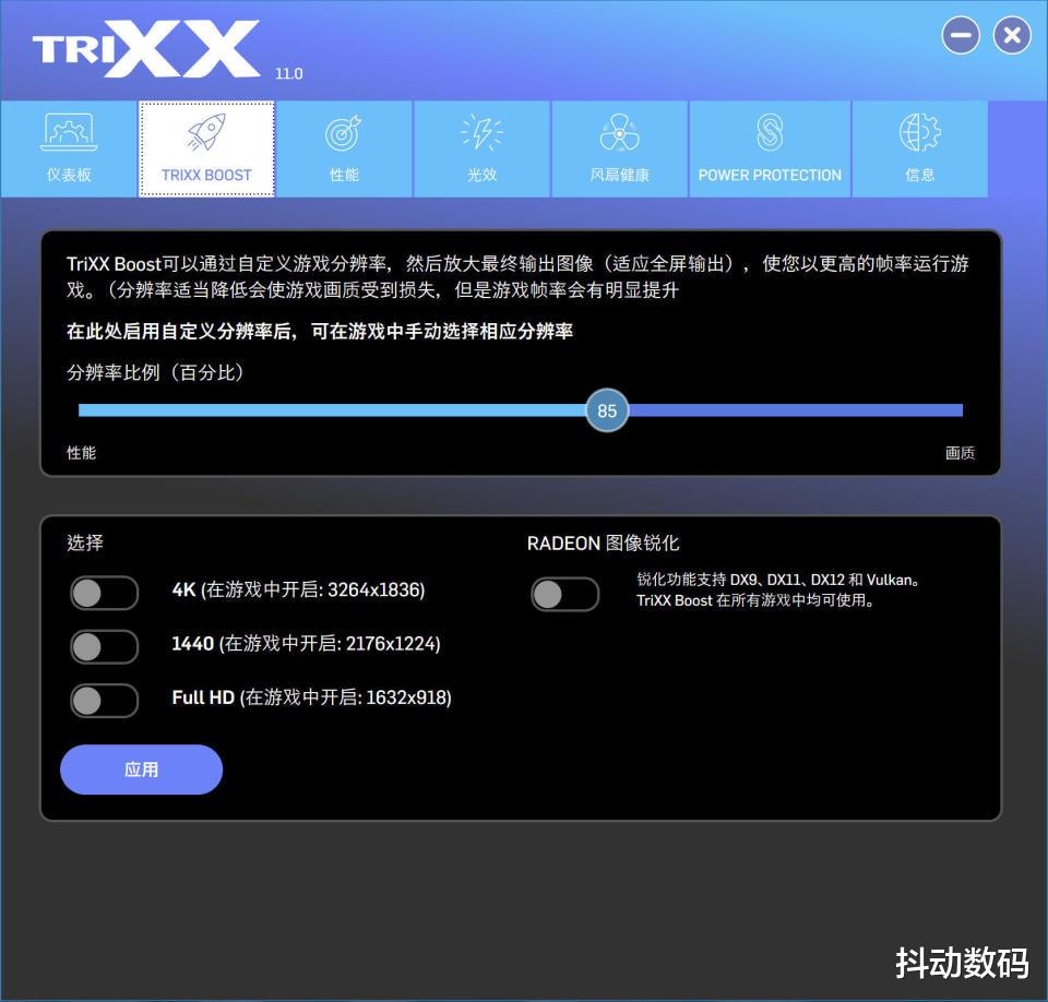 在TRIXX BOSST界面则可以调整自定义游戏分辨率。