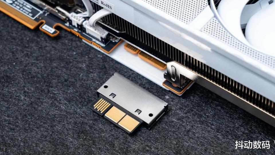 这款纯白的氮动极光显卡在显卡侧面改成了三角形的格栅设计,但是都一样支持TRXX灵动岛光效,可以自定义灯光颜色。