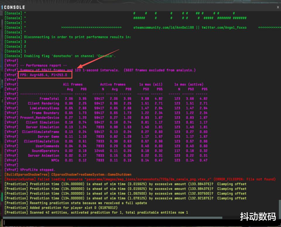 「CS 2」游戏1080P分辨率非常高画质下游戏平均帧数485.4 FPS,最小帧253 FPS。