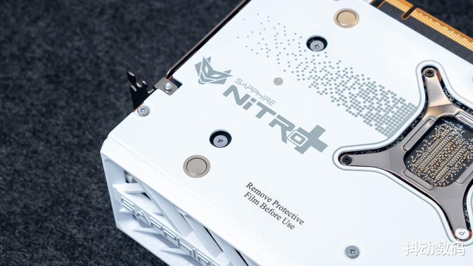 显卡背板也有蓝宝石Sapphire NiTR+的小字,以及一行使用前记得撕膜的英文提示。