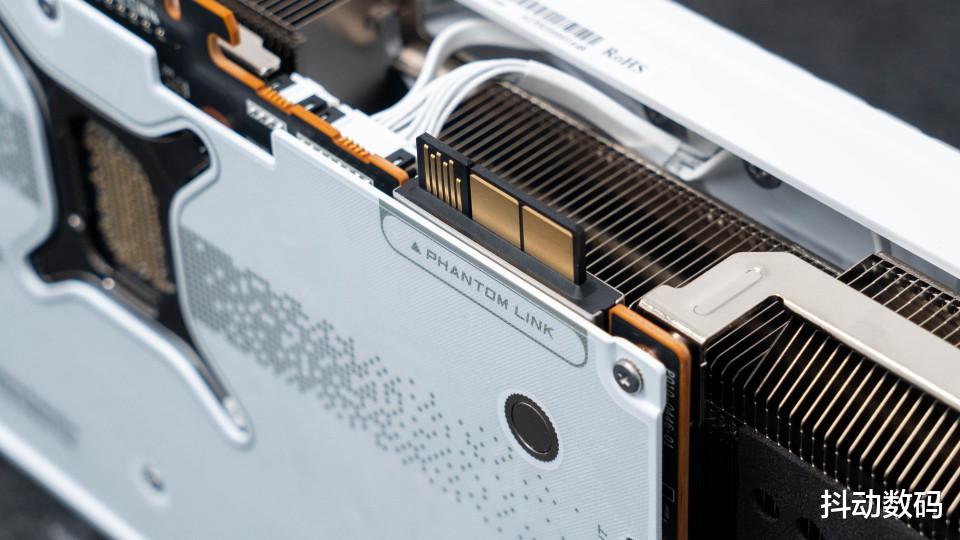 之前蓝宝石氮动RX 9070XT大受欢迎的原因就是其隐蔽式的供电接口设计,可以完美地实现显卡供电线材的隐蔽收纳。现在这款纯白色的氮动极光则进一步地优化了这点,还加入了Phantomlink系统,支持搭配支持Phantomlink系统的自家主板或者华硕的Phantomlink背插主板使用。