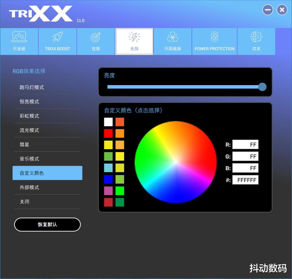 当然对于多数玩家来讲,TRIXX最大的用处还是设置灯光效果了。