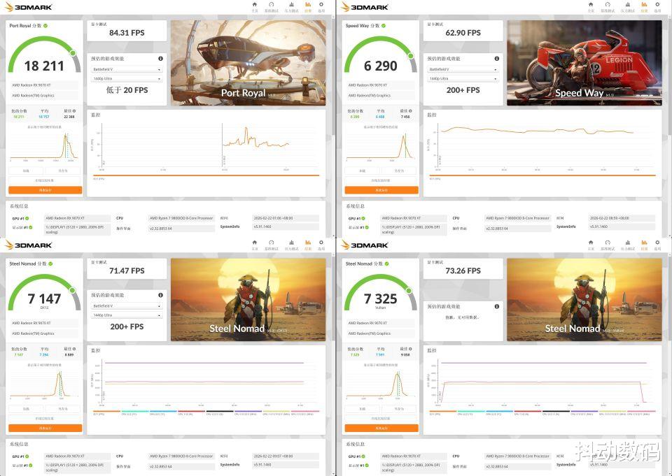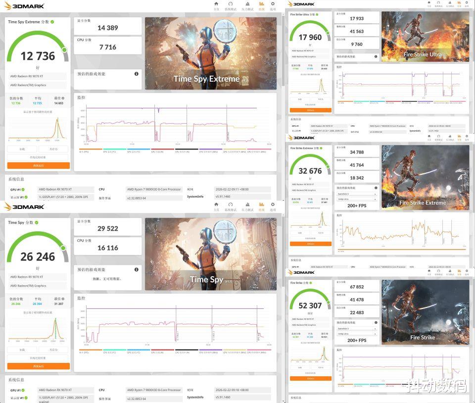 3DMark针对显卡的测试部分,光线追踪方面对比隔壁70Ti会略有落后,但是整体性价比来讲我觉得对于目前的游戏玩家来讲9070XT真的是不错的选择。