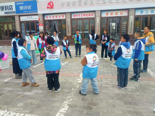 崆峒区新民北路社区“伙伴领航站”带领孩子做游戏